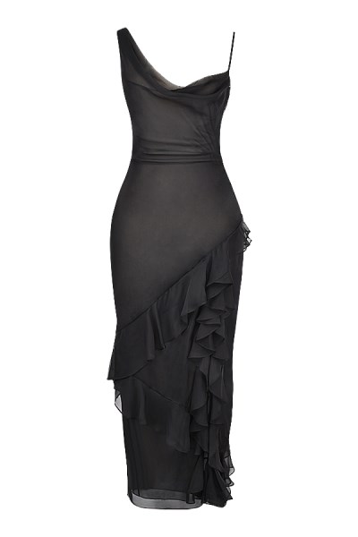 $80.70FREE DELIVERY ON YOUR ORDER Description Our elegant 'Malila' dress is made from layers of chiffon that drape beautifully across your frame. Suspended from asymmetric straps, the black hue and flouncy ruffles makes 'Malila' a forever classic. It zips to the side for easy on. Wear yours with our 'Paris'…