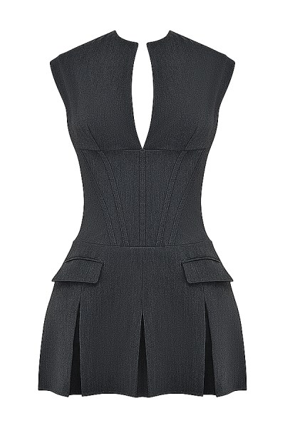 $71.70FREE DELIVERY ON YOUR ORDER Description 'Eleanor' will fit right into your early Fall wardrobe. Cut from our soft tailoring in a Charcoal hue, it reveals a plunging neckline in a sleeveless silhouette and features a feminine pleated skirt that's for showcasing great legs. The bodice is fitted with our…