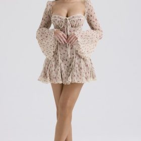 'Analissa' is made from a pretty dotted floral chiffon in a gorgeous rose print with delicate satin trims and underpinned with our figure cinching power mesh lining for coverage. It has underwired cups and 'Analissa' is supported by internal boning to cinch the waist. We love how the long sleeves have exaggerated pleated cuffs that match the floaty mini hem beautifully. It zips to the back for easy on and looks ultra chic paired with our 'Tao' barely there sandals in beige for your prettiest date night yet. The 'Regular Cup' option suits cup size A-C whilst the 'Bigger Cup' option suits cup size D-E. Taller girls, we heard you and this is available in two lengths, our regular mini length and 2 inches / 5cm longer. Regular length: Approx 80cm and Longer length: Approx 85cm. WHERE TO WEAR: