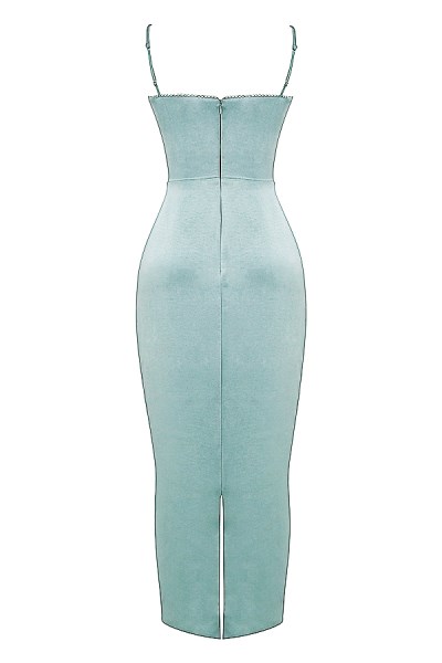 Simplicity at its most elegant in our 'Costanza' dress, cut from luxurious sheen satin in a gorgeous light jade. The bodice features our signature corsetry boning to the sides for a structured fit and the sleek silhouette will hug your curves to perfection. We love the scalloped trim and the barely there straps adjust for the perfect fit. The skirt falls to a flattering maxi length with a split to the hem for easy movement and it's fully lined for a smooth finish. 'Costanza' zips up the back for easy on and looks ultra chic styled with neutral sandals like our 'Ghost' clear strap sandals.