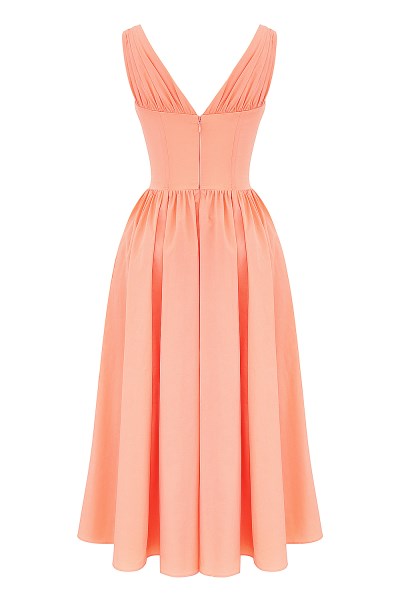 Channeling understated elegance, 'Emmelina' is an effortless wear-anywhere style in a gorgeous sorbet hue. The cotton rich fabric is blended with stretch and beautifully designed with a gathered bust. The plunge neckline perfectly mirrors the open back and the bodice is corseted to cinch the waist. The floaty midi skirt swishes with every step, adding that ultra feminine feel and it zips to the back for easy on. 'Emmelina' will be your go-to dress from Spring through to Summer. Wear yours with tonal heels like 'Lola' in sunkissed. The 'Regular Cup' option suits cup size A-C whilst the 'Bigger Cup' option suits cup size D-E.