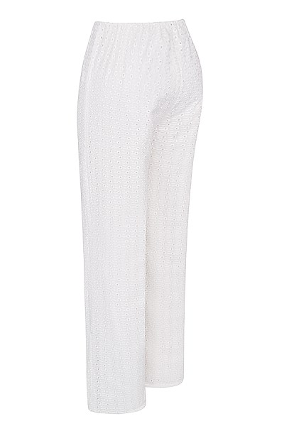 Made from broderie anglaise cotton. Fully lined. Stretch Factor: Little Stretch Designed by House Of CBSee more Trousers here Length: Approx 109cmInside Seam Length of Trousers: Approx 80cmMaterials: New Dainty Embroidery Anglais, Heavy Rayon
