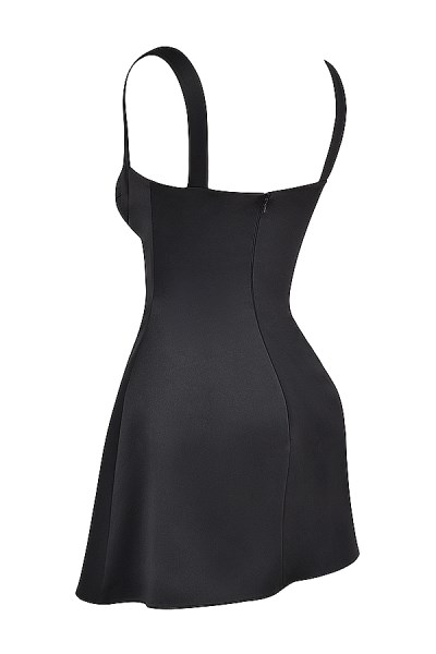 Feminine and elegant, our 'Kara' mini dress has a romantic feel. It's cut from our lustrous, ultra light duchess satin in timeless black that drapes effortlessly over your curves. We love the floaty feel to 'Kara' as it flares gently at the hem. It is fully lined for comfort and has a zip to the back for easy on. Wear yours with dainty heels like our 'Lola' high heels in black and a clutch to match.