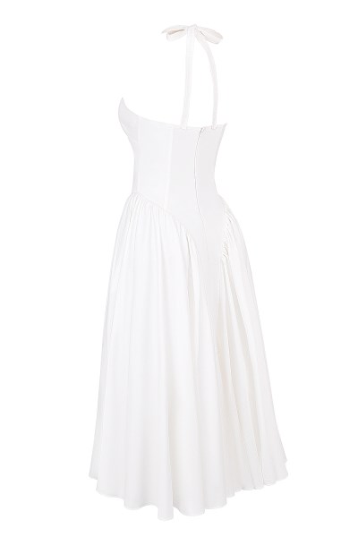 With a shape reminiscent of vintage Hollywood eras, Marilyn is your perfect Italian Summer sundress. THE ultimate vacation dress, 'Marilyn' is made from a cotton-rich fabric and has a gorgeous silhouette with a fitted bodice. The plunge halter neckline ties beautifully in a bow, at the neck showcasing the revealing open back. The floaty feel offers a touch of romance, layered with the softest tulle for a beautifully shaped midi skirt. It zips to the back for easy on and is fully lined in breathable viscose. The best thing? It has pockets! Could it be more perfect?! Wear yours with the daintiest heels like 'Lola' in white. WHERE TO WEAR: