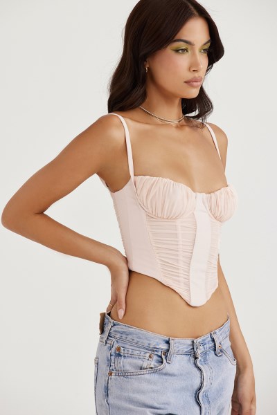 Pretty in pink, 'Rochelle' is so feminine with it's gathered detail and peony hue that's just perfect for sunny days. Cut from softly gathered mesh panels and trimmed in a cotton twill, 'Rochelle' features our amazing corsetry boning to snatch the waist with gently gathered, underwired cups for a bust flattering fit. The delicate shoulder straps are adjustable and it's fully lined in our special sculpting power mesh and stretch woven for comfort. The zip to the back makes for easy on and we love this teamed with our 'Yara' white jeans or elevate the look with our 'Elenaora' trousers in scarlet. The 'Regular Cup' option suits cup size A-C whilst the 'Bigger Cup' option suits cup size D-E. As corsets are designed to fit snugly, we recommend sizing up if you are between sizes.