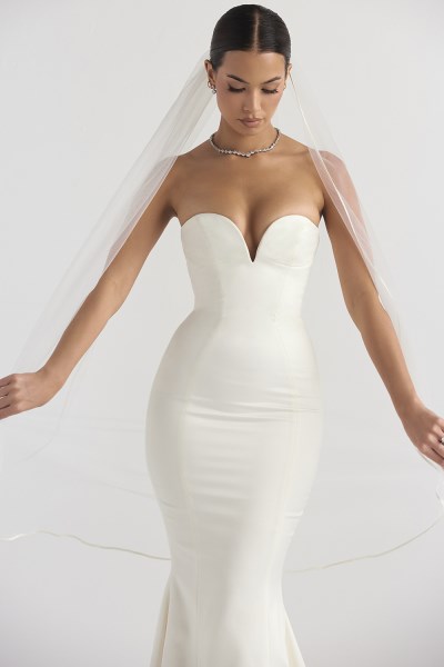 Simple yet classic, our beautiful 'Simone' soft tulle veil floats weightlessly in white as it compliments your all important dress. It has a comb clip to keep the veil secure. Wear yours with our 'Emilie' bridal gown for the perfect Fairytale look