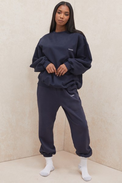 Our 'Sky' joggers are cut from our ultra premium quality heavyweight fleece back jersey with a flattering elasticated waistband and cuffed hems. Featuring a three pocket style and our HouseofCB logo to the front, they are cut with a loose comfortable fit that looks great styled up or down. Team up with our 'Halo' Navy Oversized Hoodie for warm winter dressing. See the whole Sweats collection here Made from 100% cotton fleece back jersey. Stretch Factor: 3/3 Designed by House Of CBSee more Trousers here Length: Approx 105cmInside Seam Length of Trousers: Approx 71cmMaterials: Brushed back cotton (100% Cotton)