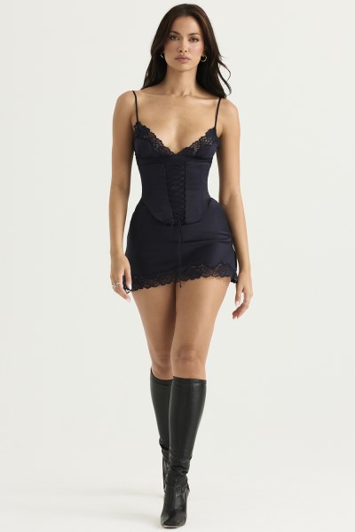 Cut from our luxurious ultra light duchess satin, 'Soraya' is our delicate and dainty slip dress that transitions into a waist cinching fit thanks to the detachable corset. Wear it with or without depending on your vibe. The slender shoulder straps are adjustable and it has a sexy plunge neckline. We love the side split and pretty lace edging to the soft cups and hem to finish off this ultra feminine creation. It has a zip to the back for easy on. Wear yours with knee high boots or dainty heels like 'Paris' in patent black.