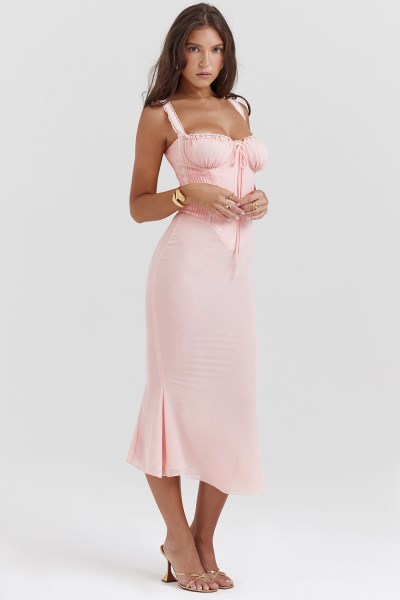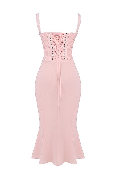 Syrah Soft Peach Lace Back Midi Dress