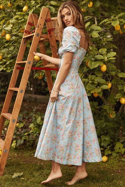 Tallulah Blue Vintage Floral Puff Sleeve Midi Dress