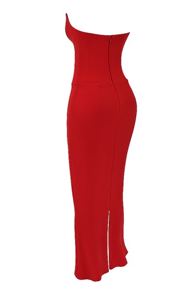 Glamorous, elegant and timeless are the three words that perfectly describe 'Tamara'. This stunning creation is cut from cherry stretch crepe with a strapless peaked neckline that showcases the bust and highlights your décolletage so beautifully.