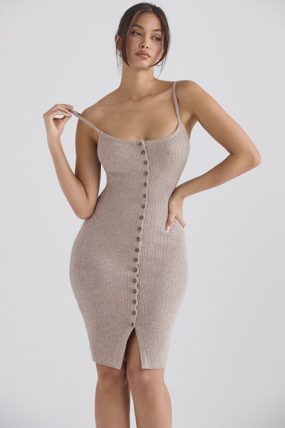 Teva Beige Cashmere Knit Midi Dress