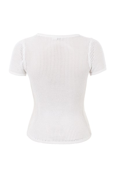If you loved our 'Savannah' top you'll love our short sleeve version, 'Yves' that's perfect for Summer. Cut from a soft and stretchy crochet knit with a scooped neckline for a close fit, the pretty detail and luxury feel makes it super comfy and a chic, versatile staple to pair with almost anything. It pulls on for easy wear and we love this teamed with the 'Mariella' mini skirt in white for an ultra chic match.
